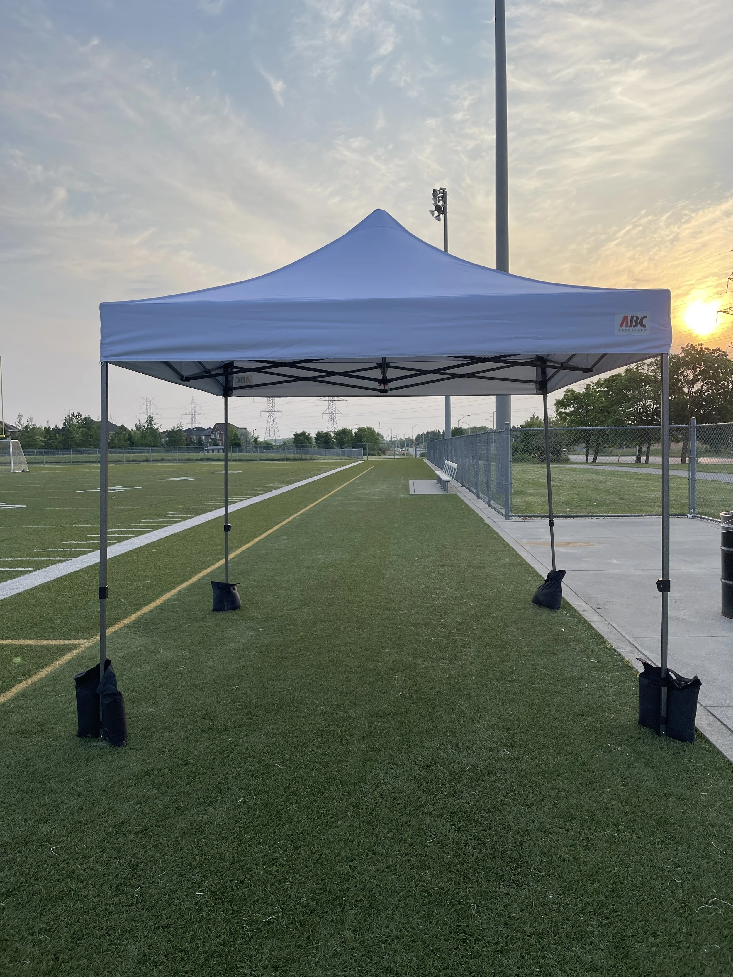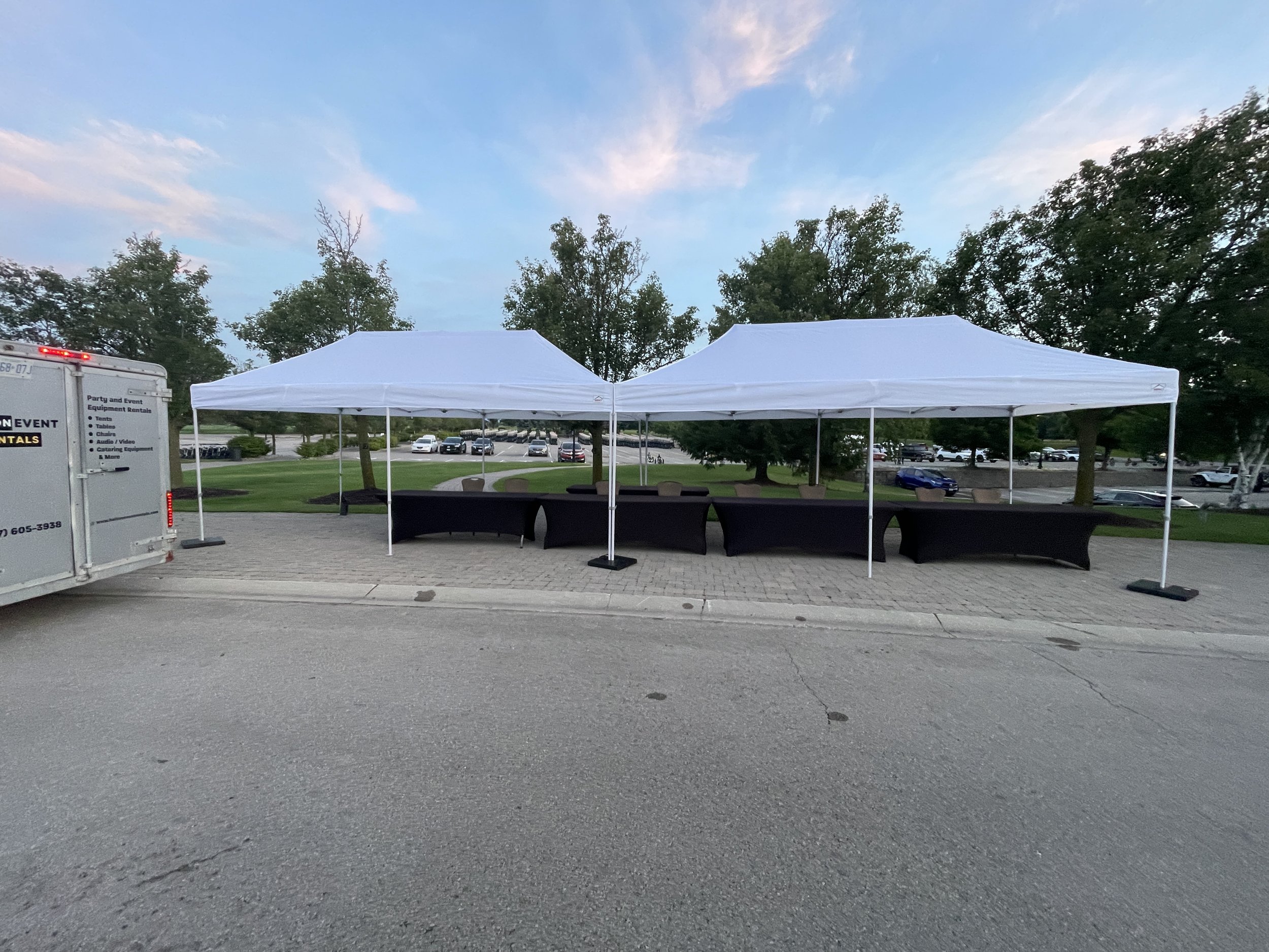 Add-ons: walls, sandbags/weights, banners, tables & chairs